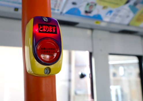 目的地が近づいて来たら、自分の席の近くの「降車ボタン」を押し、乗務員に知らせてください。